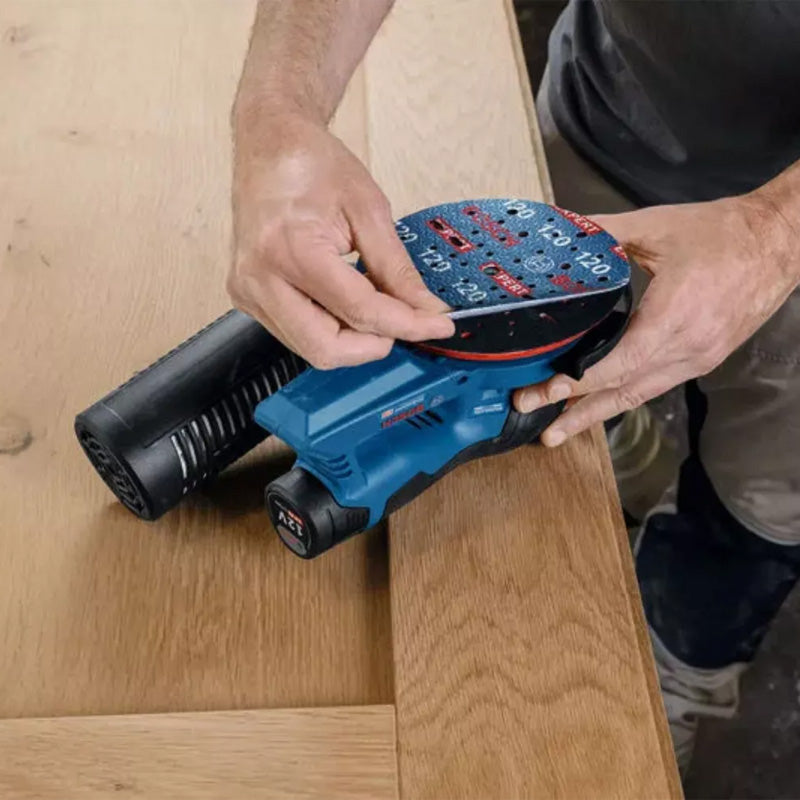 Livrée sans batterie ni chargeur, compatible avec toutes les batteries 12V Bosch Professional. Idéale pour une utilisation polyvalente, allant des petits travaux de finition aux ponçages plus importants.