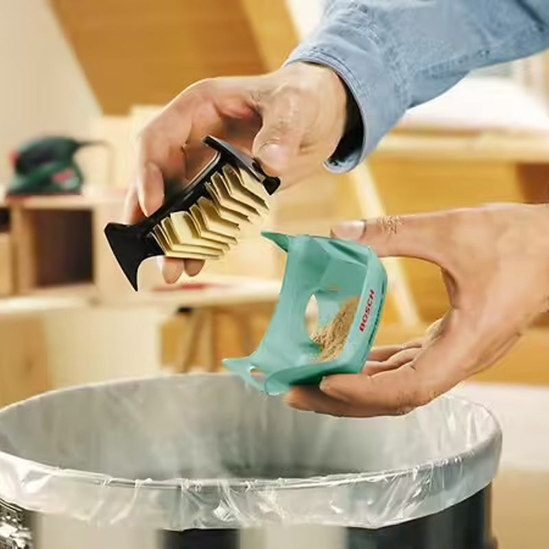 Son design ergonomique permet une utilisation à une main, avec un confort optimisé grâce à un faible niveau de vibrations et de bruit. Le système auto-agrippant rend le remplacement des abrasifs rapide et simple, tandis que le système micro filtre translucide assure une récupération efficace des poussières.