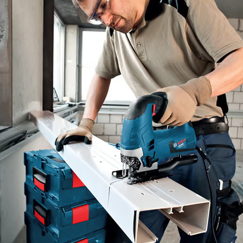 La scie sauteuse filaire BOSCH GST 90 BE offre fiabilité et performance grâce à son moteur de 650 W, garantissant une progression de travail rapide et efficace. Sa poignée étrier avec gâchette de vitesse permet un contrôle précis et confortable, même lors d’une utilisation prolongée.