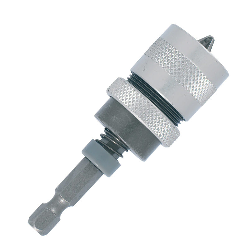 • Queue HEXA 6.35mm à changement rapide : un attachement hexagonal à gorge pour le blocage et déblocage rapide de l'outil. Conforme à la norme DIN 3126 E6.3=> Permet un changement rapide de vos outils en supprimant le serrage/desserrage manuel du mandrin. Pour les perceuses et les visseuses.