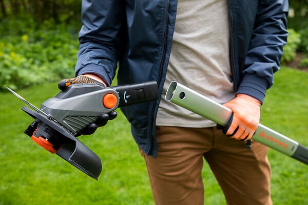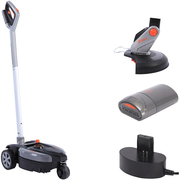 La série Yard Force 12V iFlex Urban est idéale pour tondre la pelouse facilement dans les petits espaces. La poignée iFlex peut être retirée de la tondeuse et placée sur la tête du coupe bordure. La tondeuse à gazon iFlex LM F23 est équipée d'une roue avant universelle réversible libre qui tourne dans toutes les directions et tous les angles lors de la tonte. L'articulation pivotante de la tondeuse assure une maniabilité maximale : elle peut pivoter à 360 degrés et permet de tondre même sous les meubles de jardin et autres zones difficiles d'accès. Livrée avec une tête de coupe bordure compatible avec le même manche.